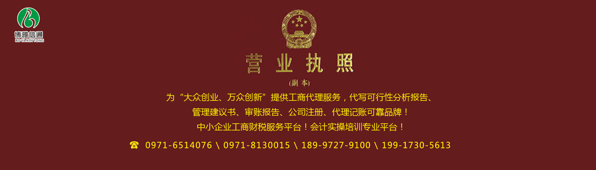 北京博雅信通會計服務(wù)有限公司西寧分公司為各中小企業(yè)提供各種專業(yè)工商財稅會計服務(wù)。包括公司設(shè)立籌劃、公司注冊、執(zhí)照變更、代辦注銷、代理記賬報稅、亂賬整理、會計實(shí)操培訓(xùn)、會計職稱培訓(xùn)(會計取證培訓(xùn))等一站式服務(wù)體系,誠信、專業(yè)、高效、省心! 公司簡介: 北京博雅信通會計服務(wù)有限公司西寧分公司 成立于2003年,積累了幾十個行業(yè)工商財稅會計服務(wù)經(jīng)驗(yàn),主要提供公司注冊、執(zhí)照變更、企業(yè)注銷、工商年報、代理記賬、納稅申報、會計培訓(xùn)、財稅顧問等一系列服務(wù)。全程工商財稅老板們甩手我們代理,并且用足用好工商財稅優(yōu)惠政策,讓企業(yè)老板省心、省時、省事兒!節(jié)約會計核算和納稅成本,解放您的寶貴時間抓好企業(yè)經(jīng)營,做您的...